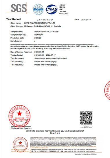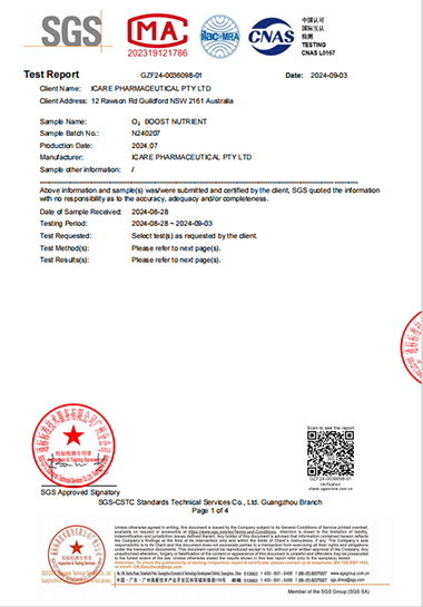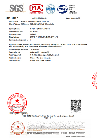 According to SGS testing reports, our products - “O2 BOOST NUTRIENT,” “MEGA DETOX - BODY RESET,” and “INNER RENEW TABLETS”—have excelled in various assessments, including sensory testing, microbiological testing, and chemical testing, demonstrating their high quality and safety. These test results not only showcase the superior quality of our products but also reflect our professionalism as a health supplement company and our commitment to product safety.